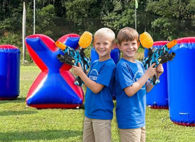 Each party includes one full hour of battle time with gel blasters for up to 10 kids at a time, barricades to duck, hide, and strategize, face masks for protection, and plenty of Orbeez gel pellets. A trained attendant is included to run the games, explain the rules, and keep everything moving smoothly—so parents can relax while the kids have a blast.